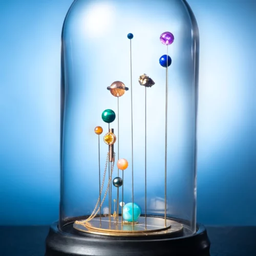Depuis toujours, je travaille avec les pierres avec justesse et respect. Chaque pierre prolonge l’énergie d’un astre : Saturne ancre le temps, Mercure circule entre les mondes, Vénus relie les polarités, Sirius guide vers le destin stellaire, Mars, Chiron, Neptune et le Soleil… chacun joue son rôle dans la symphonie de l’âme. Dans mes créations, les pierres ne sont ni décoratives ni choisies au hasard : elles sont des archétypes et des messagères.