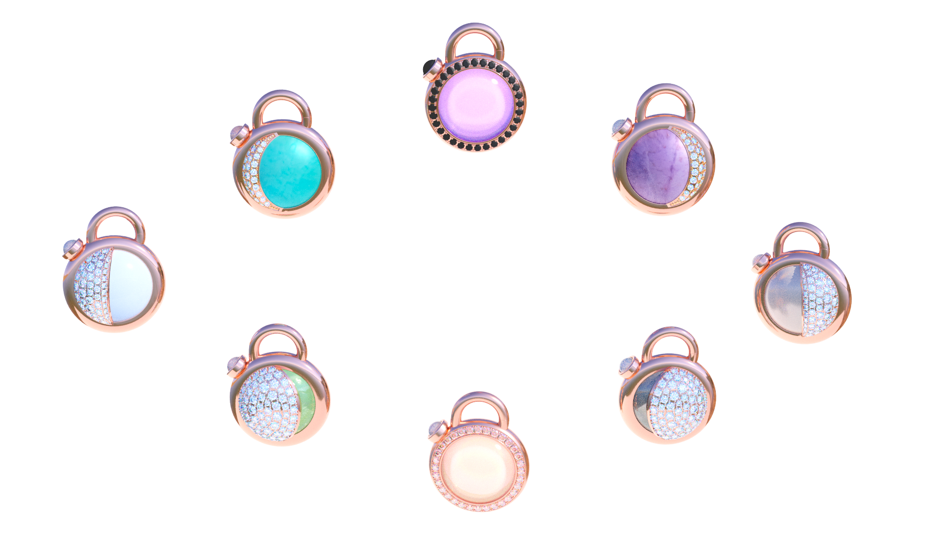 Sur la base de la date et du lieu du moment à célébrer, l’artiste réalise une esquisse. La pierre de centre et le cabochon qui permet d’actionner le cadenas sont choisis sur-mesure. Le bijou peut être porté en bracelet ou en collier dont la longueur et le diamètre de la maille sont également réalisés sur-mesure.